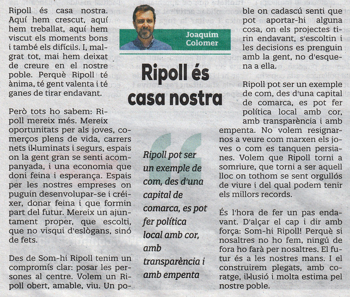 Us animem a participar d’aquest projecte en creixement al Ripollès. Entre tots farem un Ripollès millor per a tots, que sigui capaç d’afrontar els reptes del futur amb garanties.