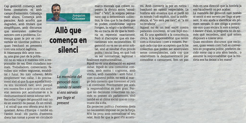 🗞️ Article d’en Joaquim Colomer al diari El Ripollès del dijous 29 de Gener del 2026.