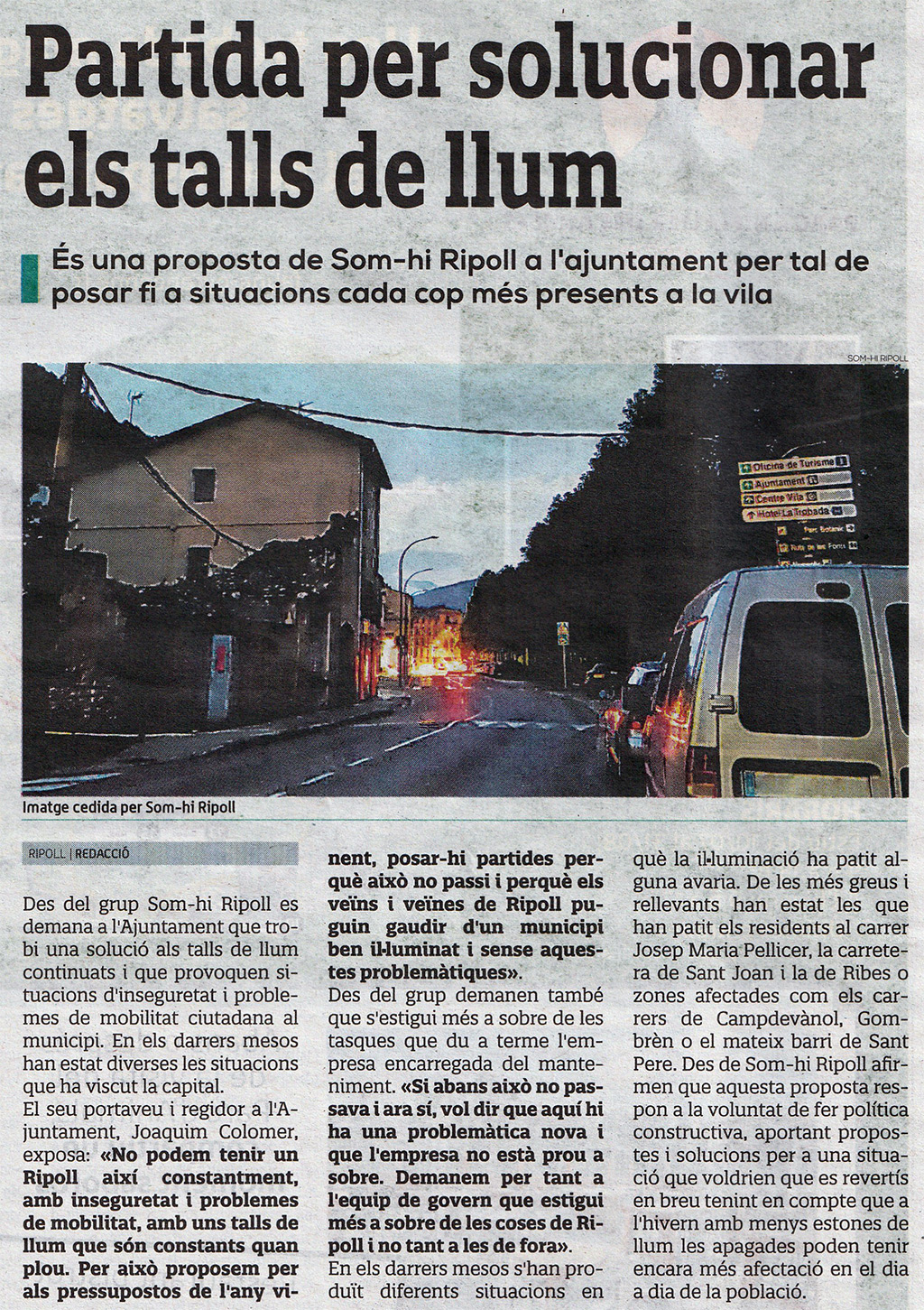 Avui dijous dia 4 de Setembre surt la noticia al diari El Ripollès sobre la proposta que vam fer de solucionar definitivament els talls de[…]