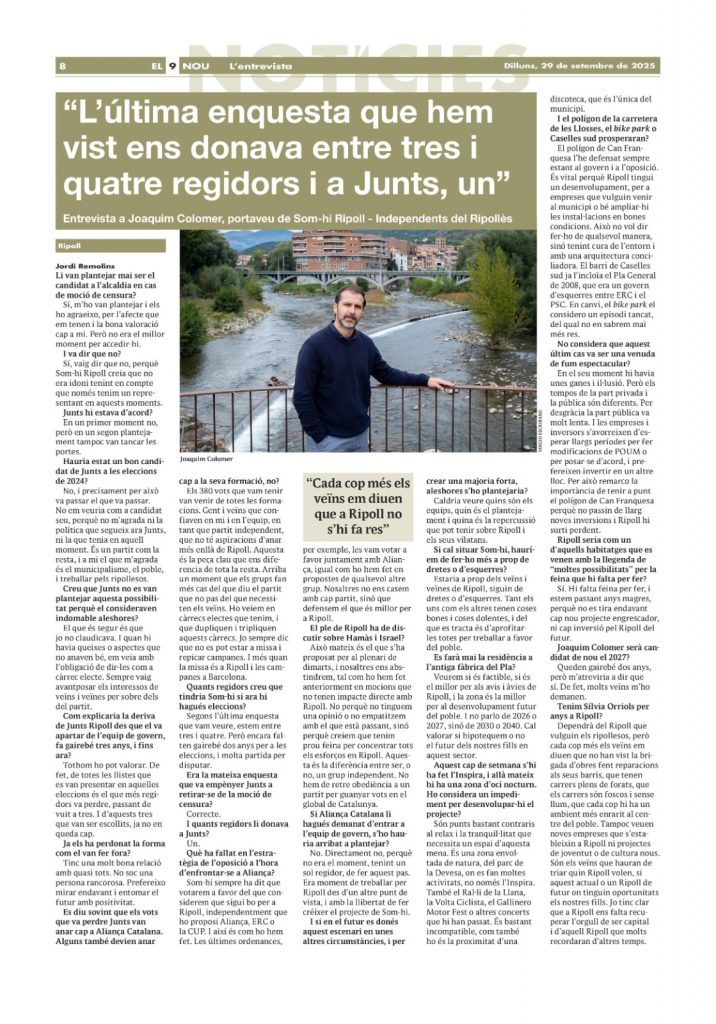 🗞️ Us compartim l’entrevista amb en Joaquim Colomer que han publicat avui al diari El 9 Nou.